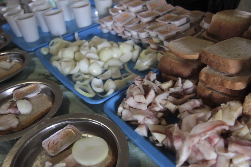 Военных, которые участвуют в занятиях по тактической, огневой, инженерной и другим видам подготовки в рамках зимнего периода обучения дополнительно обеспечили горячим чаем, сокосодержащими напитками, хлебом, луком и салом.