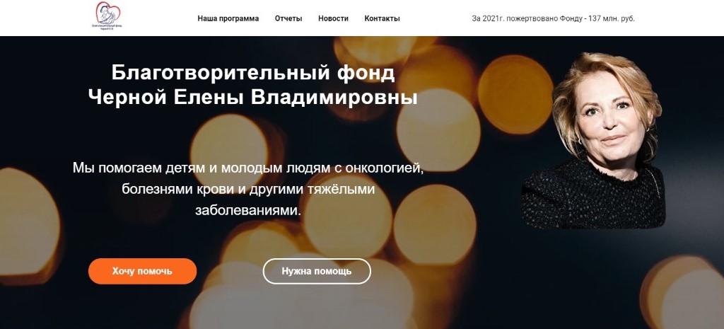 Напомним, благотворительный фонд Елены Черной создан в 2020 году в память о маме, бабушке, жене, предпринимателе и меценате Елене Черной. Миссия фонда – адресная помощь детям и молодым людям до 25 лет, с болезнями крови, онкологическими и другими тяжелыми заболеваниями, содействие развитию гражданского общества, помощь медицинским учреждениям, в том числе связанная со строительством новых медицинских учреждений.