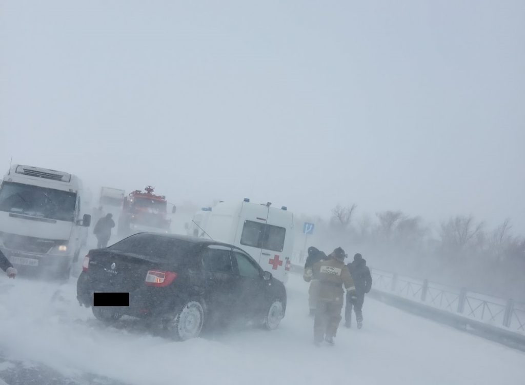 В Оренбургской области дорожная авария с участием семи автомобилей попала на видео. Ранее на участке трассы Оренбург-Акбулак столкнулись сразу семь автомобилей.