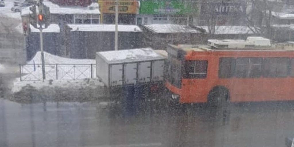 В Оренбурге на улице Беляевской девятого марта произошло ДТП. Фургон «Хлеб» врезался в троллейбус.