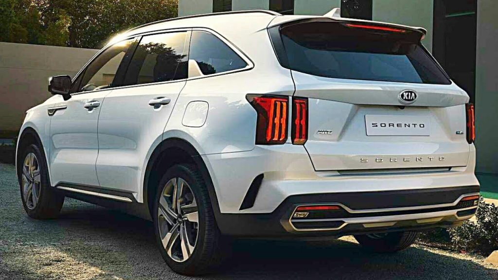 Корма нового Kia Sorento 2021 отличается неординарным дизайном двухсекционных фонарей и скульптурным бампером, который отличают боковые прорези. Таким образом, за счет обширного применения острых граней в дизайне внешнего вида авто в любом варианте комплектаций Kia Sorento 2021 стал выглядеть более спортивно и строго.