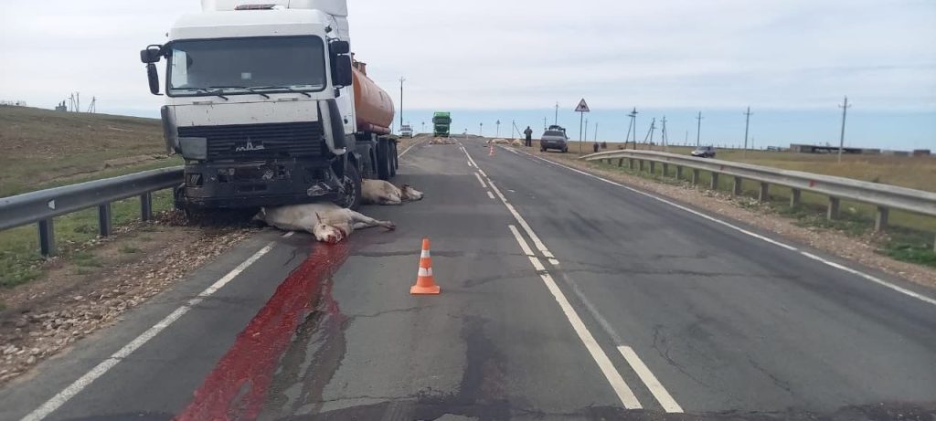 Как сообщили в пресс-службе регионального УМВД, около 17.10 на 406 км автодороги Казань — Оренбург водитель фуры МАЗ не справился с управлением и наехал на стадо коров в количестве пяти голов.