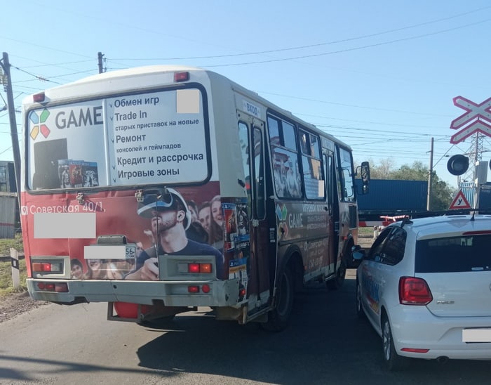 В ГИБДД на электронную почту от очевидца поступило фото на котором водитель рейсового автобуса в районе железнодорожного переезда по Шарлыкскому шоссе выехал на полосу.