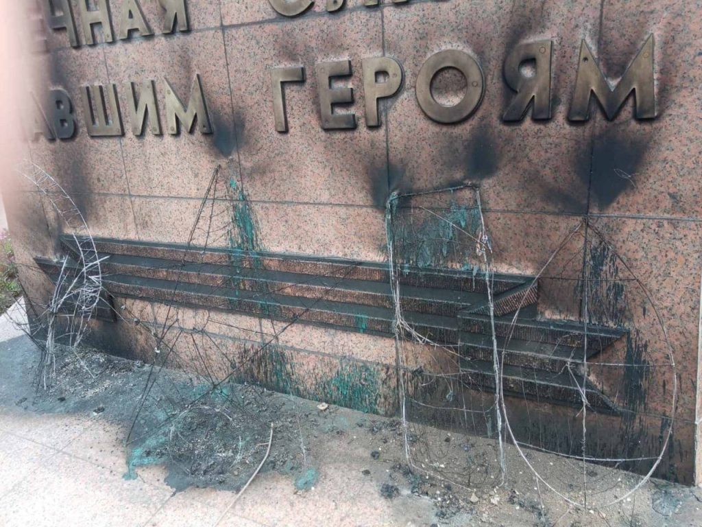 По оперативным данным, накануне, 8 июня, в дежурную часть полиции от службы «112» поступило сообщение о том, что по улице Советской Новотроицка неизвестные подожгли венки у памятника «Вечно живым». От рук вандалов пострадала в том числе и плита у памятника.