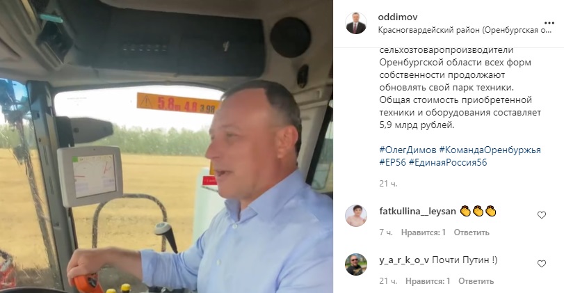 На видео политик управляет машиной в поле. Сам Олег Димов сравнил комбайн с космическим кораблем.