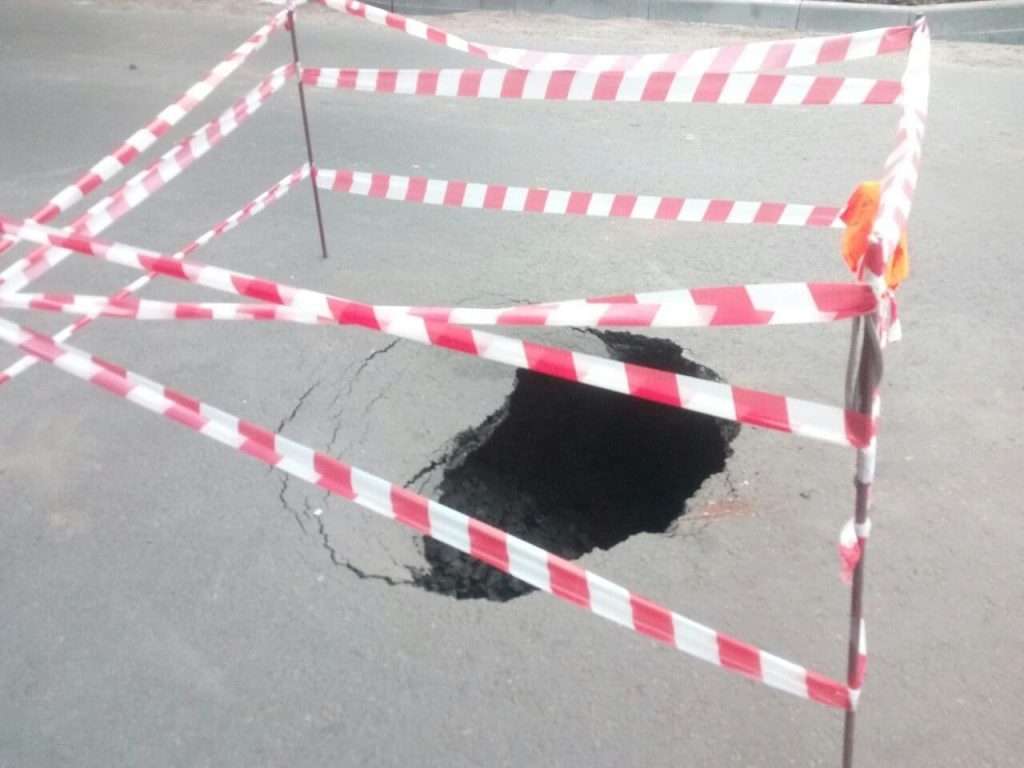О инциденте сообщают очевидцы в социальных сетях. Яма образовалась на проезжей части в районе дома №104. Свидетели прилагают фото провала, на котором видно, что в асфальте зияет глубокая дыра.