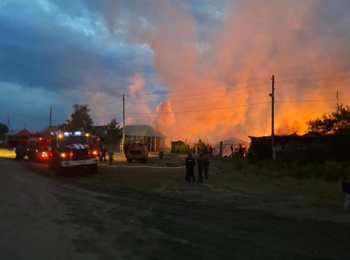 По прибытию первых пожарно-спасательных подразделений было установлено, что горят уже 11 надворных построек и 2 жилых дома. Сотрудники МЧС выяснили, что огонь перекинулся на строения с сухой травы, которая загорелась во дворе одного из домов.