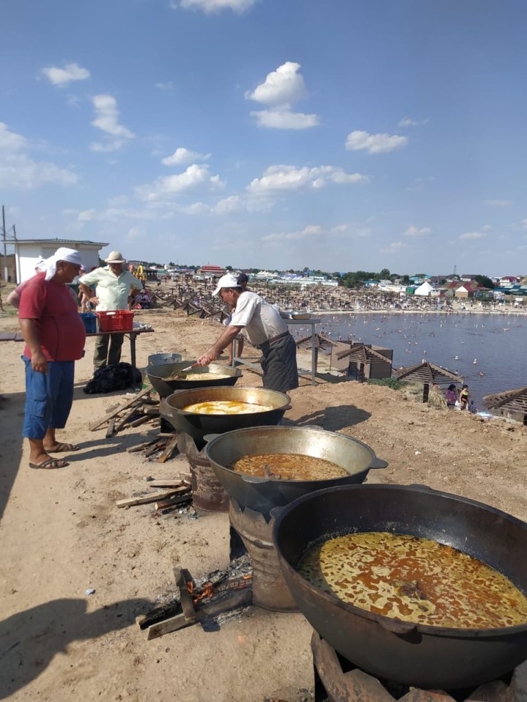 — Сегодня, как и много лет подряд, на праздник Курбан-байрам, мы готовим плов на территории курорта. Для кочевых народов это были не простые водоёмы. Много веков люди посещали эти озёра и исцелялись, считая это милостью Всевышнего. Сегодня начинается Курбан-байрам и по мусульманским правилам приносятся в жертву здоровые взрослые животные. Мясо, согласно традиции, делят на три части: одну раздают, из второй части готовят угощение для родных, соседей, друзей, а третью мусульманин может оставить себе. Разрешается раздавать угощение всем желающим и немусульманам тоже. Нельзя продавать ни мясо, ни шкуру жертвенного животного. Самое главное сегодня, чтобы Всевышний господь принял наш Курбан – байрам, и, люди на солёных озерах получили исцеление. Мы, в свою очередь, молимся, чтобы отступила эта болезнь, и народы в нашей большой многонациональной и многоконфессиональной стране жили в мире и дружбе.