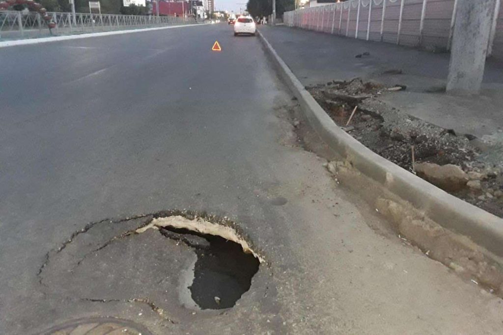 Провал обследовали после жалоб автолюбителей на большую яму, которая образовалась на проезжей части из-за провала асфальта. В нее попали несколько автомобилей и получили механические повреждения.