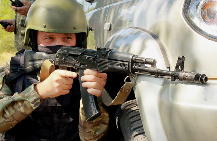 Под Оренбургом спецподразделений ОМОН и СОБР провели спецоперацию по уничтожению условного противника. По легенде учения, группа вооружённых бандитов напала на колонну с гуманитарным грузом.