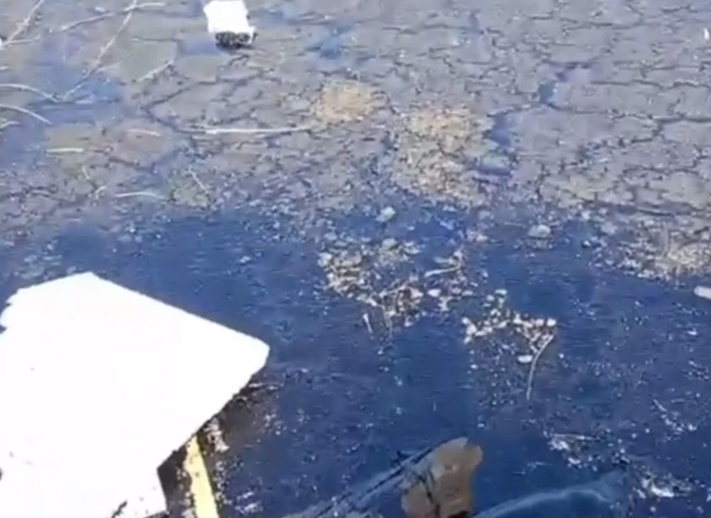 — По имеющееся информации, что нефтеотходы в данном месте сливались во времена СССР. сверху их прятала вода, но из-за погоды вода испарилась, — уточнили в УМВД.