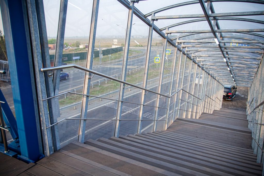 Новое сооружение в районе села Нежинка оборудовано специальными устройствами для подъема маломобильных граждан. Чтобы защитить пешеходов от шума и осадков установлено светопрозрачное перекрытие. В переходе установлены камеры видеонаблюдения.