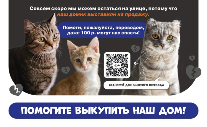 На страницах этого проекта мы рассказываем о питомцах приюта, помогаем найти для них новый дом. Чем можете помочь вы? Расскажите о нас в социальных сетях, участвуйте в благотворительных акциях «Филимоши». Если готовы помочь финансово — QR-код.