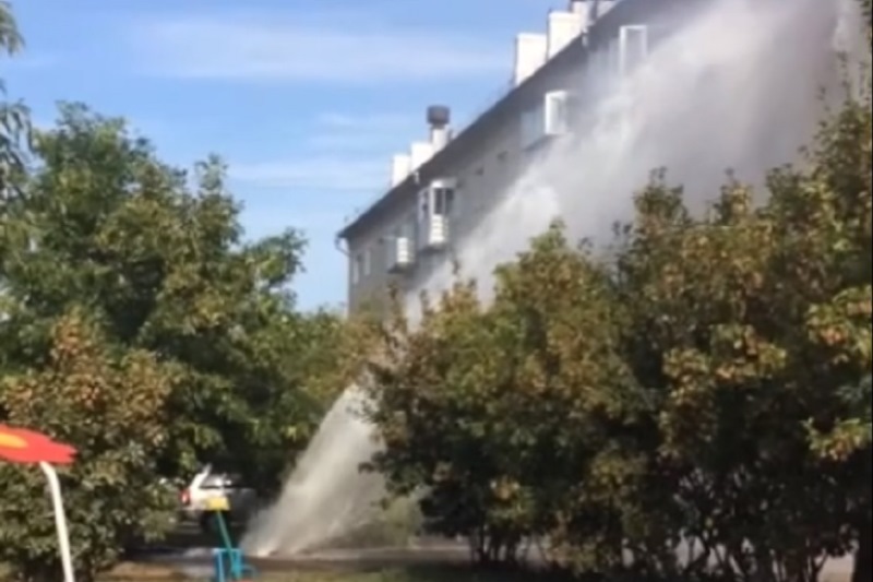 В окна вода. В Оренбурге опрессовка теплотрассы обернулась фонтаном с пятиэтажный дом Редакция Оренбург Медиа - 22.08.2019