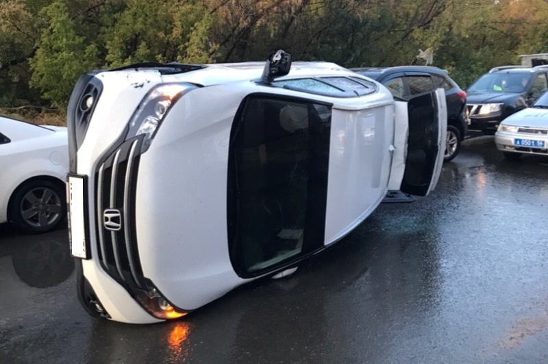 Honda на боку. В Оренбурге на Донковцева водитель иномарки поколотил припаркованные авто Редакция Оренбург Медиа - 23.09.2019