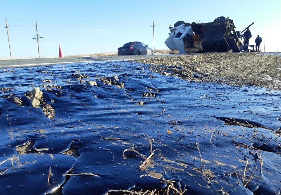 На оренбургской трассе перевернулся грузовик с битумом. Рабочие очищают дорогу Редакция Оренбург Медиа - 04.11.2019