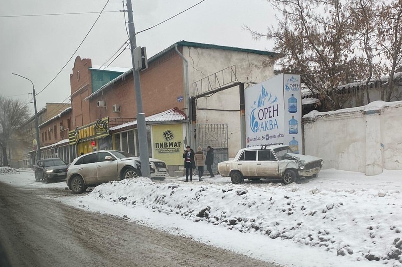 В Оренбурге на улице Чичерина Audi и «копейка» протаранили фонарный столб