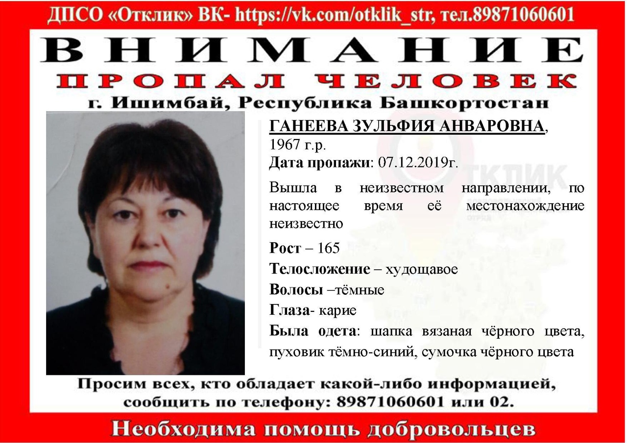 В Оренбуржье разыскивают без вести пропавшую жительницу Башкирии Редакция Оренбург Медиа - 24.12.2019