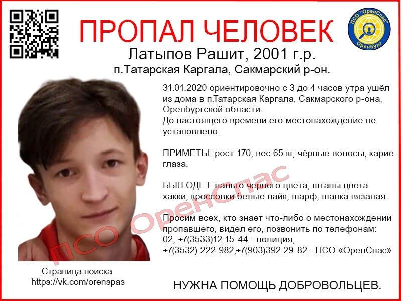 В Оренбуржье без вести пропал 19-летний парень