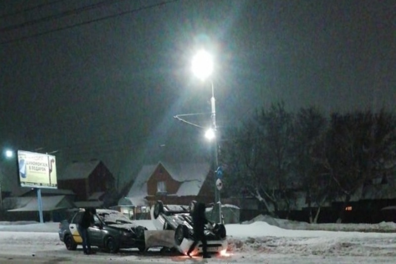 В Оренбурге на улице Терешковой «Приора» опрокинулась на крышу