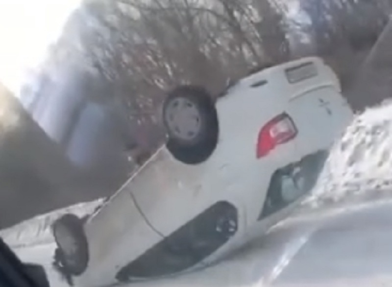 На дороге под Оренбургом Renault опрокинулся на крышу