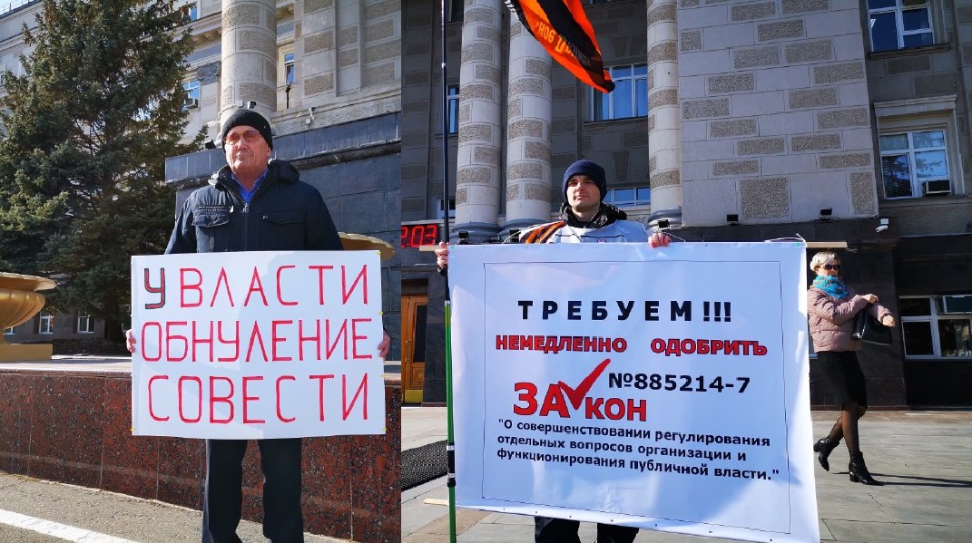 Война пикетов у Дома Советов: коммунист против поправок в Конституцию, активист НОД — за Редакция Оренбург Медиа - 12.03.2020