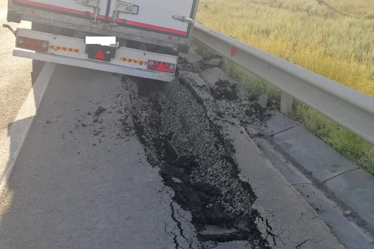 На трассе Оренбург-Соль-Илецк грузовик провалился под асфальт обочины Редакция Оренбург Медиа - 16.07.2020