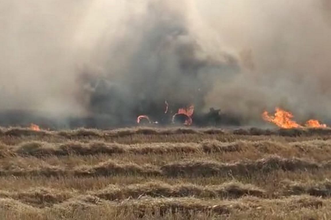 Пожар под Оренбургом. В районе Нежинки загорелись комбайн и поле Редакция Оренбург Медиа - 06.08.2020