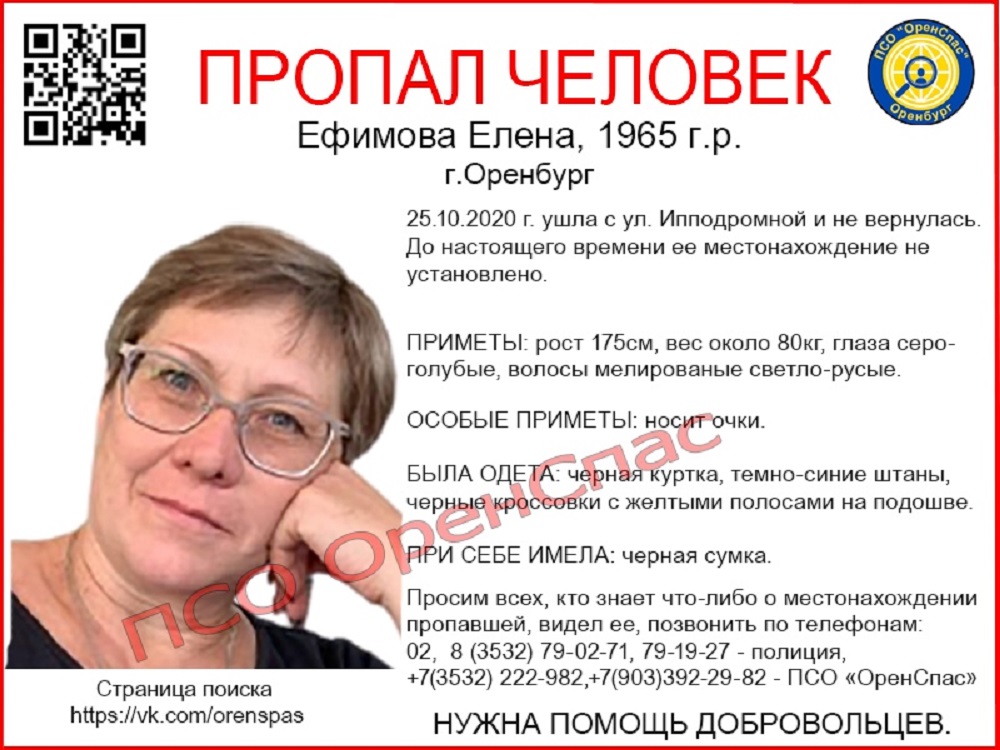 В Оренбурге без вести пропала женщина в черных кроссовках с жёлтой полосой Редакция Оренбург Медиа - 26.10.2020