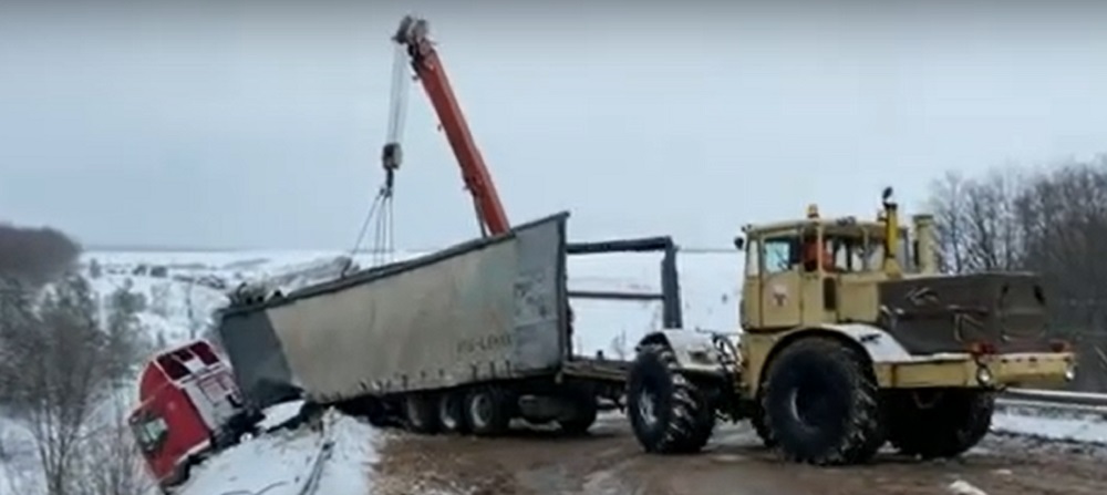 Фура в кювете. Опубликовано видео ДТП на трассе Бугульма-Уральск Редакция Оренбург Медиа - 09.02.2021