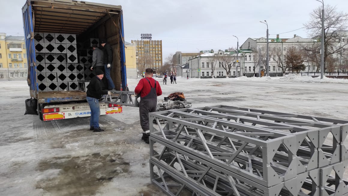 В Оренбурге на площади Ленина начали монтировать трибуны к 9 Мая Редакция Оренбург Медиа - 24.03.2021