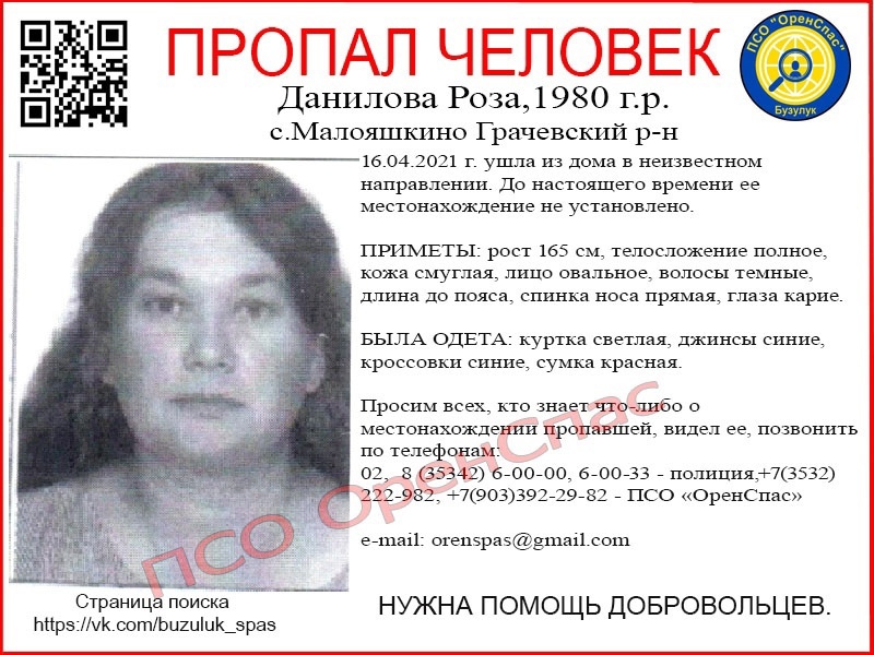 В синих кроссовках и с красной сумкой. В Оренбуржье пропала Роза Данилова Редакция Оренбург Медиа - 23.04.2021