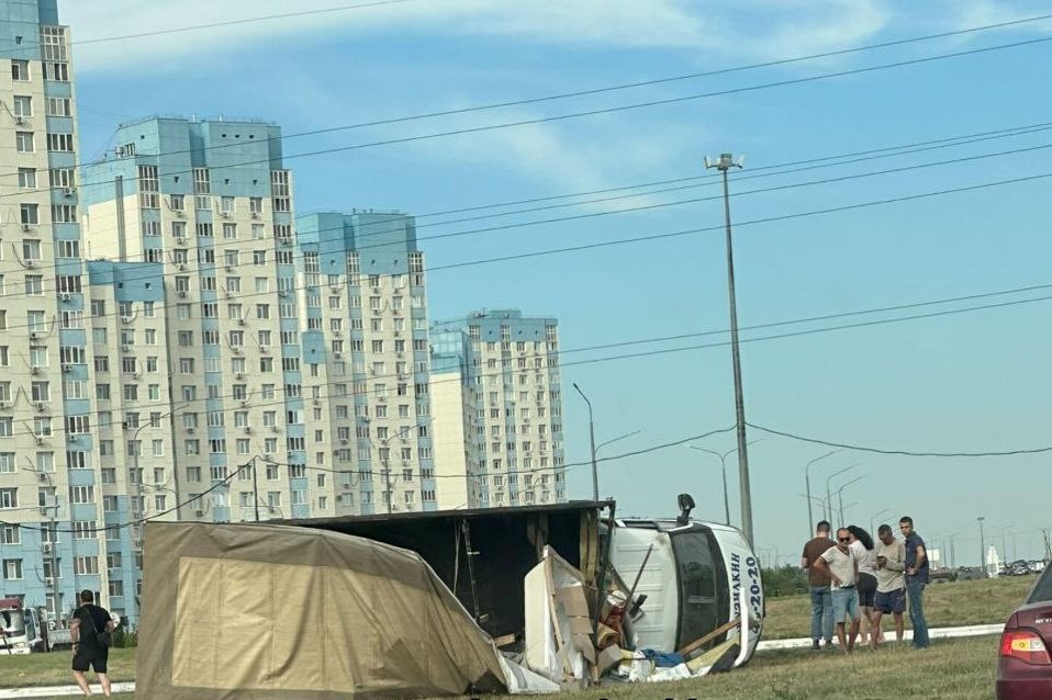 В Оренбурге на кольце улицы Гаранькина опрокинулась грузовая ГАЗель Редакция Оренбург Медиа - 14.08.2023