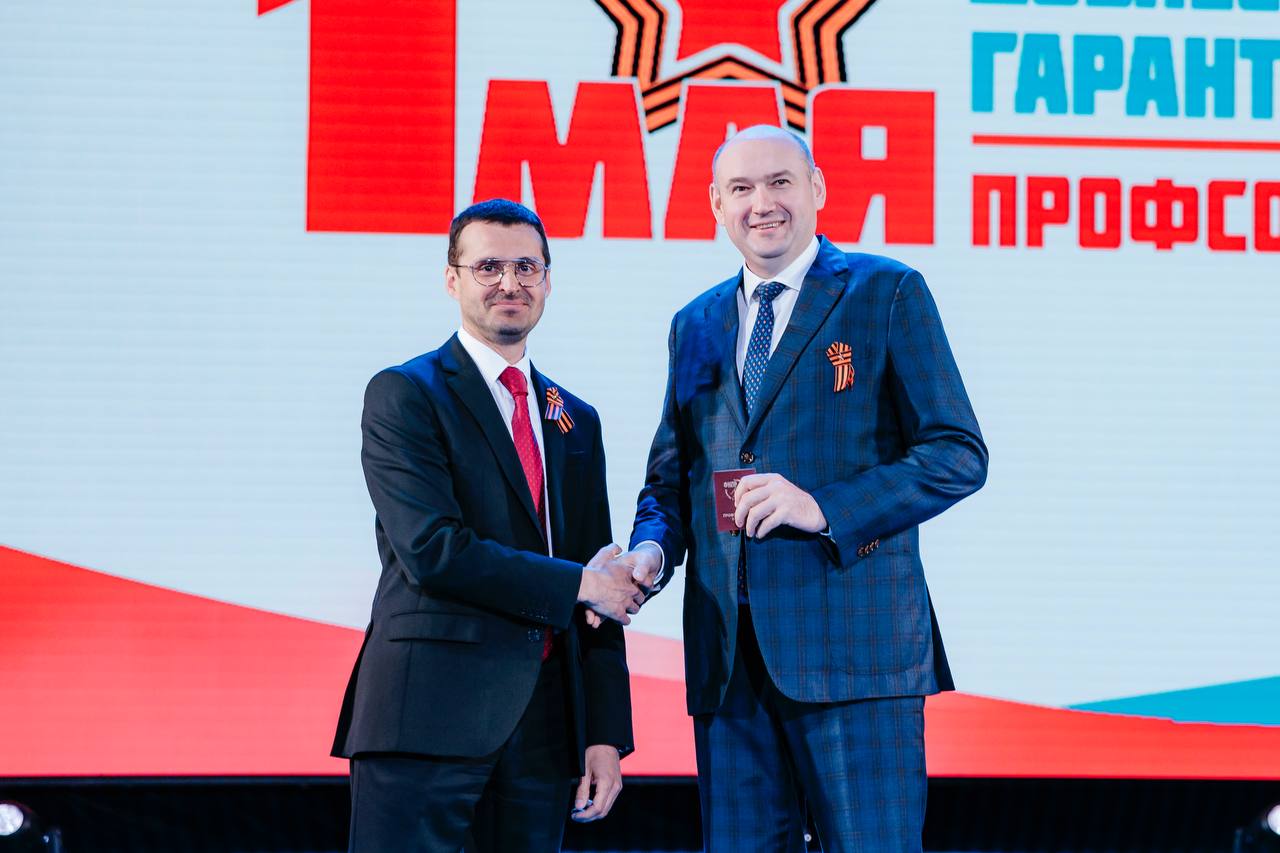 1 мая на торжественной встрече профсоюзных активистов лидер оренбургских профсоюзов Ярослав Чирков вручил врио губернатора Оренбургской области Евгению Солнцеву профсоюзный билет.