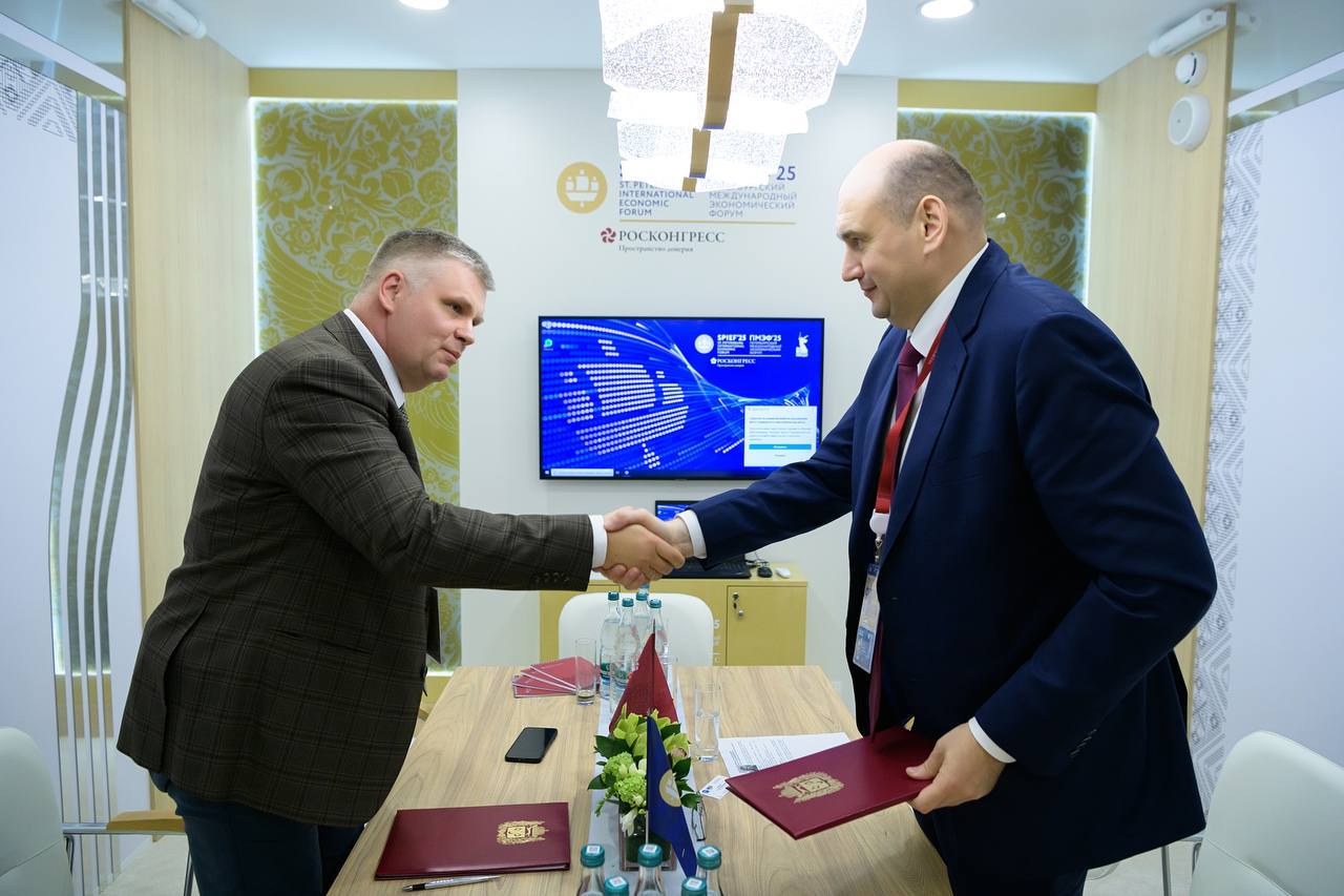 В рамках ПМЭФ врио губернатора Оренбургской области Евгений Солнцев и представитель компании «МЦЭ-Инжиниринг» Руслан Куденко подписали соглашение о реализации российско-индийского инвестиционного проекта.