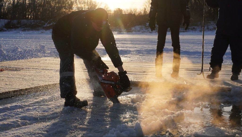 В мэрии рассказали, что подрядчик уже приступил к подготовке площадки к грядущему Крещению. Специалисты уже делают проруби. Лед из них используют для декоративных конструкций.