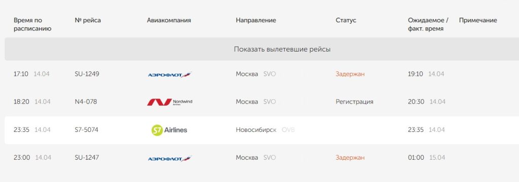 Ограничения на взлет и посадку введены для обеспечения безопасности. По состоянию на 19.часов, задержаны три рейса в Москву. Два из них авиакомпании «Аэрофлот» и один — «Нордвинд». Рейс в Новосибирск пока стоит в расписании без изменений. Он запланирован на 23.35.