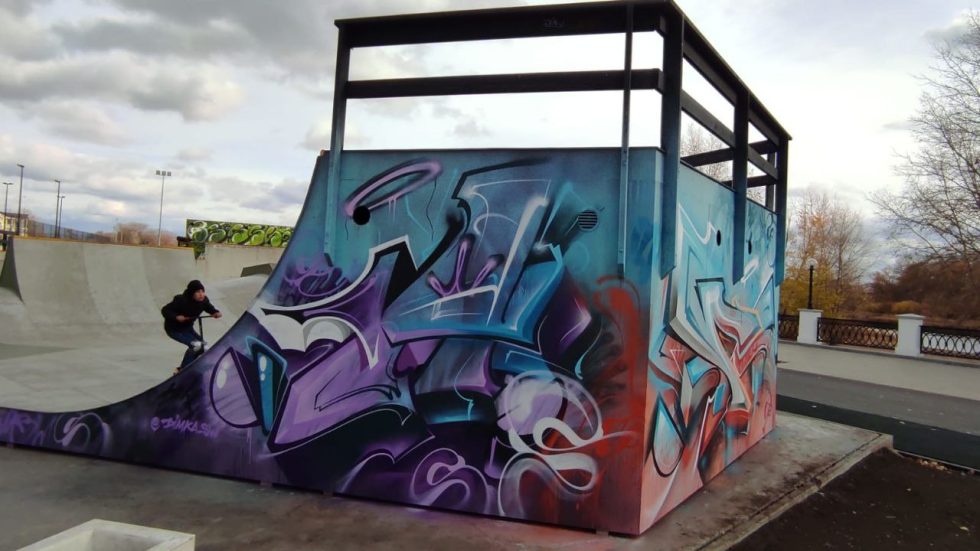 Площадку для занятий экстремальными видами спорта в едином стиле оформил оренбургский уличный художник, участник фестиваля стрит-арта ПФО «ФорматART» Дмитрий Сумбаев.