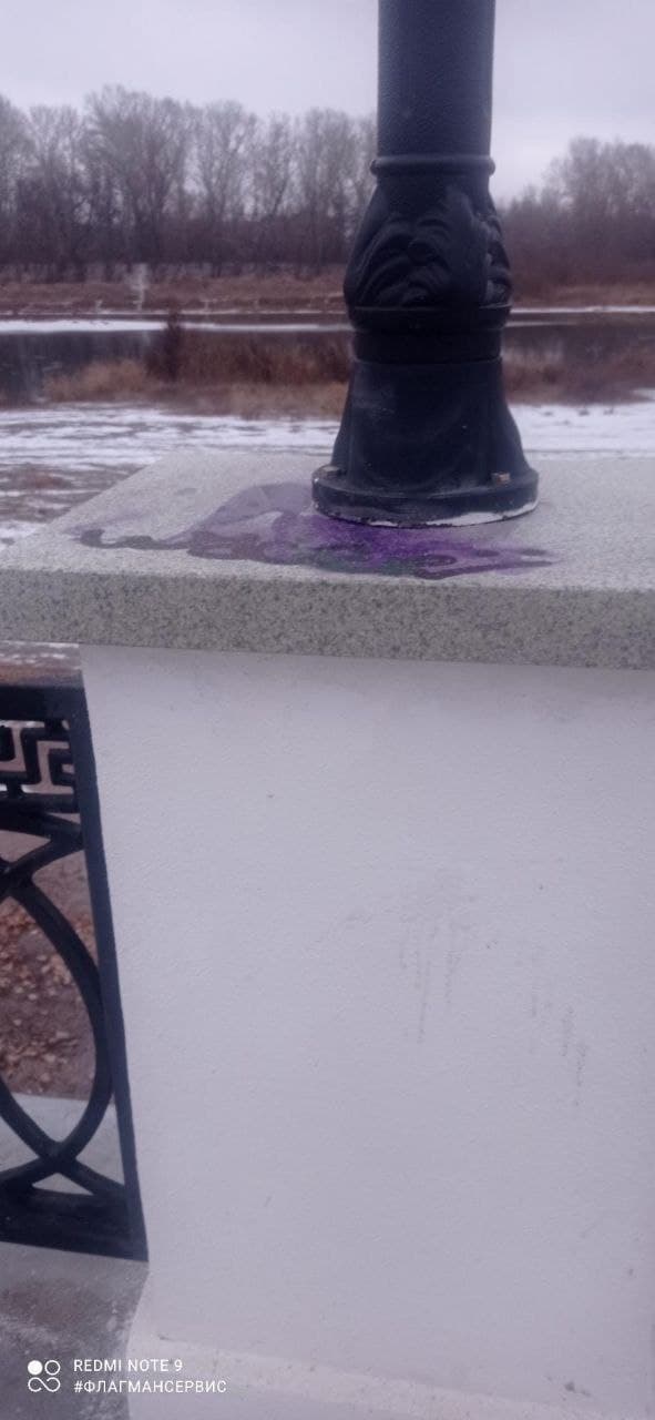 В Оренбурге на набережной вандалы испортили гранитные плиты. Фотографии со спуска к Уралу сегодня попали в сеть.