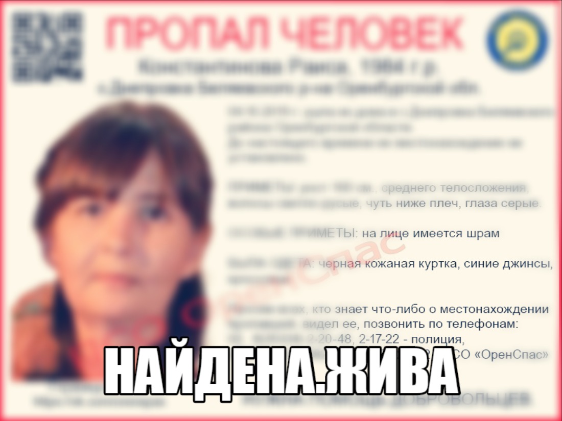 Напомним, Раиса Константинова пропала 4 октября 2019 года. Она уехала из деревни Днепровка Беляевского района в Оренбург. На следующий день её телефон отключился и Раиса перестала выходить на связь. Поисками пропавшей занимались сотрудники полиции и волонтёры ПСО «ОренСпас».