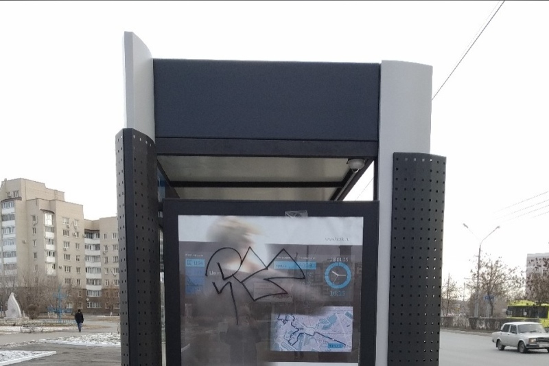В областном центре первая же «умная» остановка подверглась нападению вандалов. Неизвестные разрисовали одну из стен конструкции, которую смонтировали на улице Чкалова.