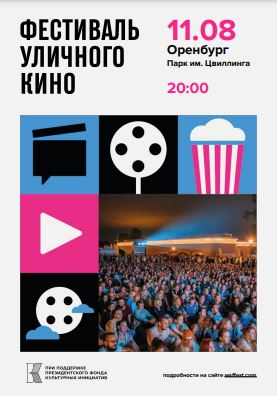 В Оренбурге запланирована серия показов фильмов Фестиваля. Первый из них состоится 11 августа в 20:00 в Парке им. Цвиллинга. Там покажут внеконкурсный альманах «Лучшее прошлых лет» (12+). Следующие показы пройдут там же, 18 и 25 августа. Будут представлены внеконкурсная программа 16+ и конкурсная программа 2022 (12+). Вход на мероприятия свободный. Для комфортного размещения организаторы рекомендуют взять с собой пледы.