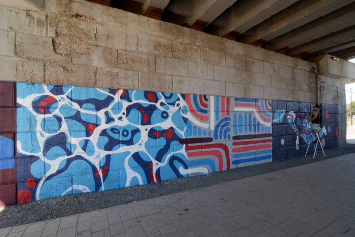 Местом для граффити выбрана поверхность опорной конструкции автомобильного моста возле самого оживлённого пространства в городе – скейт-площадки на набережной Урала. Граффити будет расположено с двух сторон опорной конструкции. Изображения, которые украсят вторую сторону, воплотят идею «движения» — поезд,  скейт, бег.