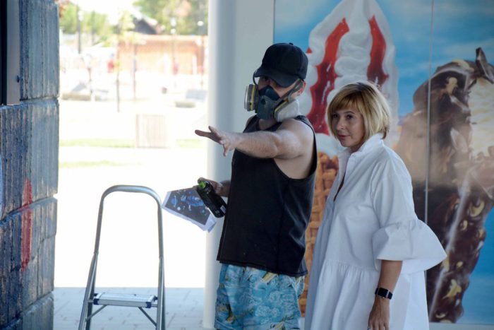 — Композиция на другой стороне стены будет олицетворять действия, которые всегда присутствуют в оживлённом центре города. Изображения станут его продолжением, а яркие краски триколора удачно впишутся в стиль городского пространства, — отметила Наталия Бровко.