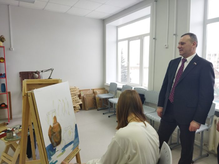 – Последний раз был, когда здесь еще шла активная фаза ремонта. Сейчас я вижу, насколько масштабные работы проделаны, начиная с витражей и холла. Чувствуется атмосфера творчества и искусства. Рад за педагогов и их воспитанников, которые теперь занимаются в по-настоящему современном и оборудованном здании. И еще раз отмечу, насколько верным было решение Президента РФ и партии «Единая Россия» реализацию нацпроектов взять на особый контроль. Все это отражено в народной программе партии, – отметил Олег Димов.