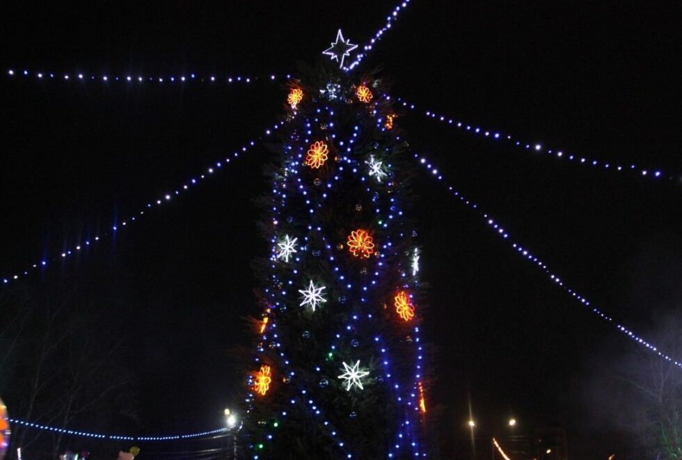 В Оренбурге открыли самую большую елку города. Она стоит в Степном на территории парка имени 50-летия СССР.