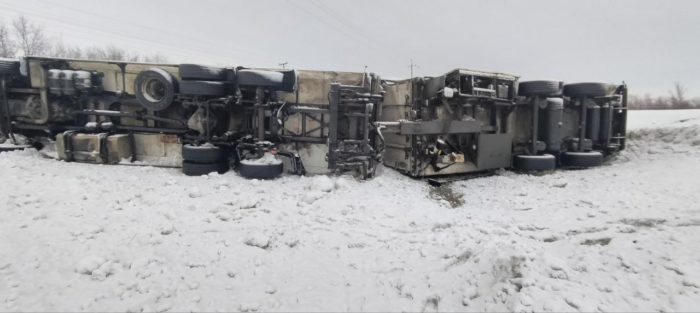 По данным регионального УМВД, водитель грузовика MAN двигался по трассе Оренбург-Самара в темное время суток, когда не учел дорожные условия и не справился с управлением. Фура съехала в кювет и опрокинулась на бок.
