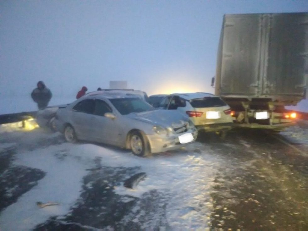 Массовое ДТП случилось на участке автодороги Оренбург-Орск. На проезжей части столкнулись семь автомобилей. Погибших и серьезно пострадавших нет.