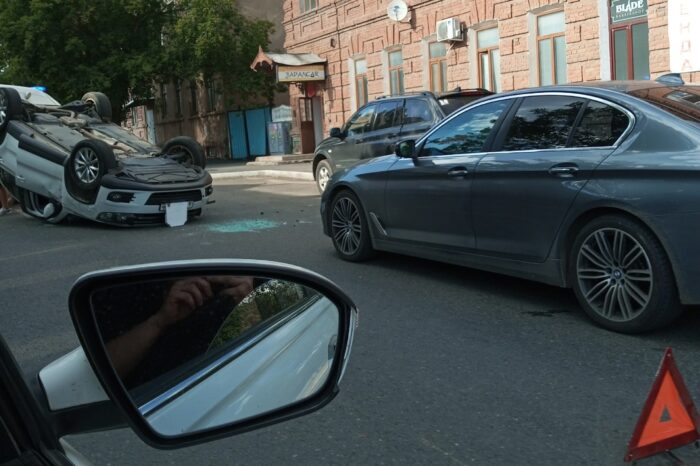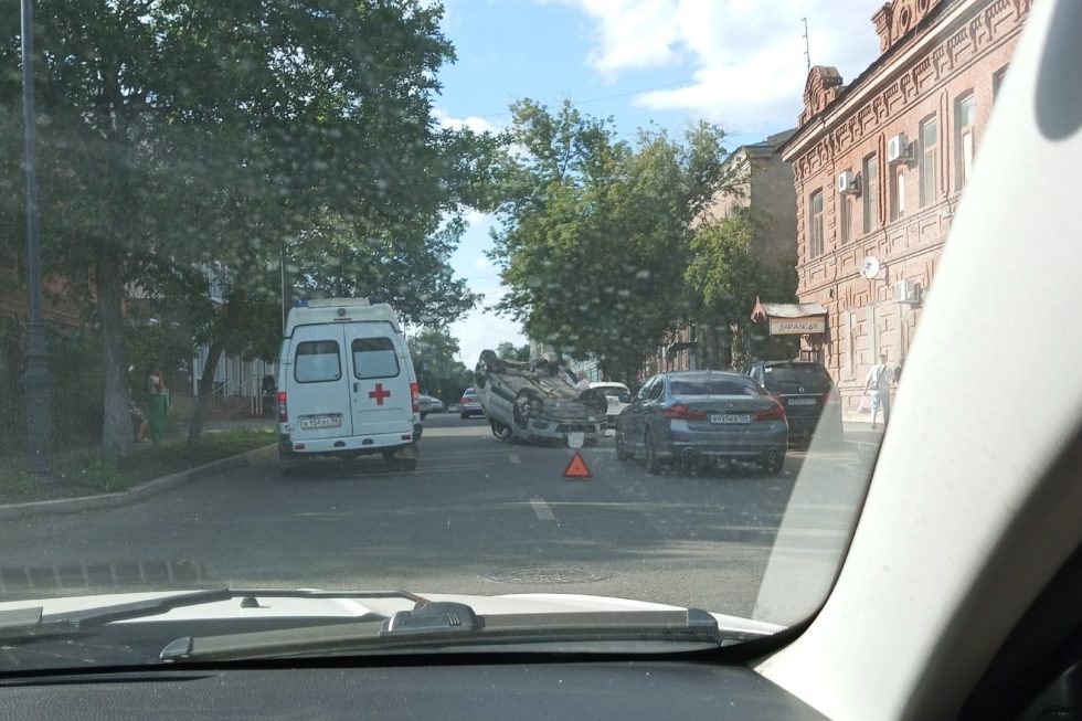 О дорожном происшествии «Оренбург Медиа» сообщили очевидцы ДТП. По словам свидетелей, на улице Кобозева Оренбурга столкнулись три иномарки. От удара автомобиль KIA опрокинулся на крышу.