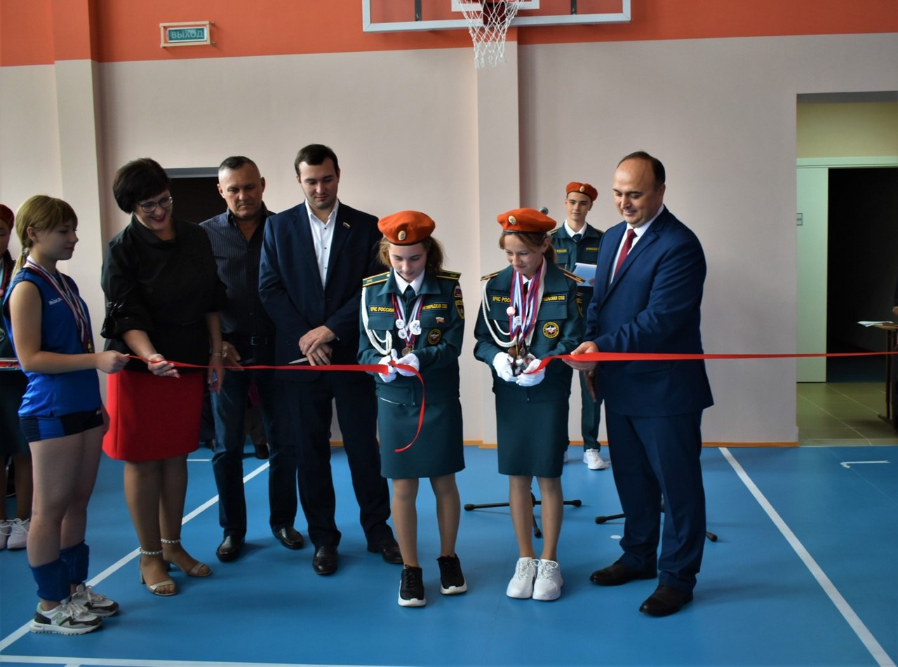 В Октябрьском районе после ремонта по партпроекту «Детский спорт» и нацпроекту «Образование» открылся спортивный зал.